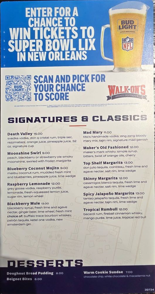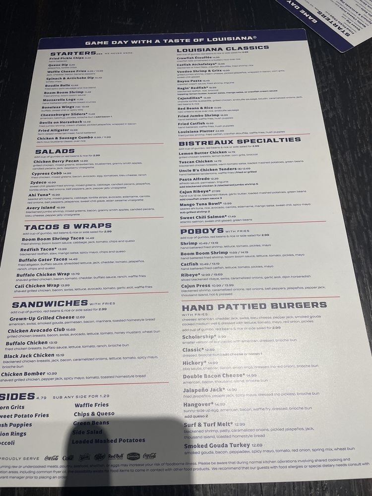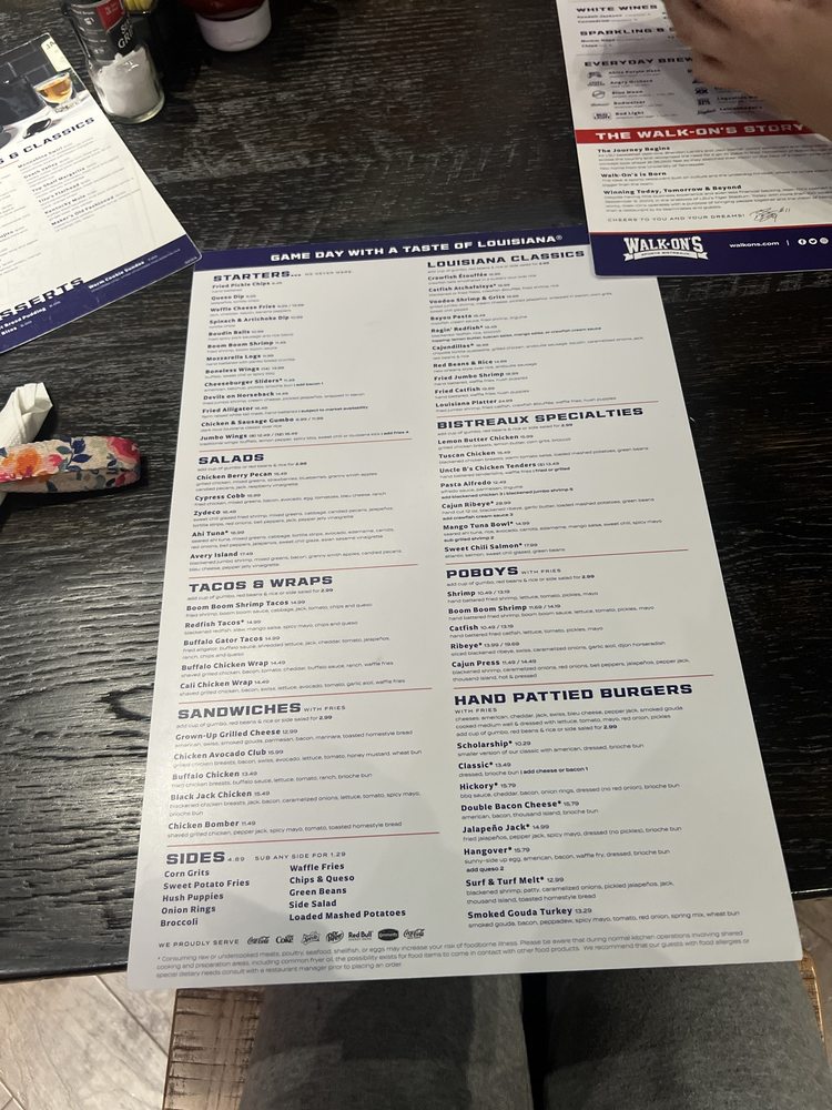 Walk-On’s Sports Bistreaux - Opening Soon brings a taste of Cajun/Creole-American cuisine to Conroe, TX. The menu features a variety of starters like Boneless Wings with different sauce options, flavorful Boom Boom Shrimp, and savory Boudin Balls. For those looking for tacos and wraps, options include Boom Boom Shrimp Tacos and Buffalo Chicken Wrap. The Ultimate Tailgate Bundle is perfect for groups and includes a selection of mouthwatering dishes. Customers rave about the attentive staff, delicious food, and the vibrant atmosphere perfect for enjoying a meal or watching sports. Whether you're looking for a quick lunch or a fun night out, Walk-On’s Sports Bistreaux promises a memorable dining experience.
